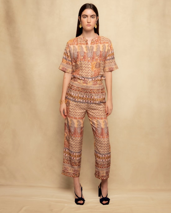 Calças com Estampado de Corte a Direito