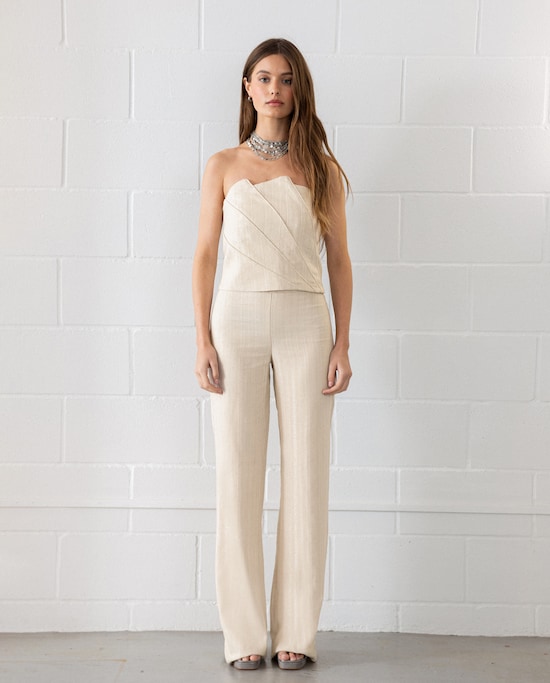 Calças à Boca de Sino Metalizadas com Cintura Alta