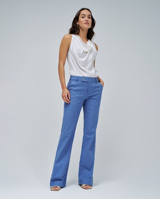 Calças Chino Flare de Cintura Alta em Linho