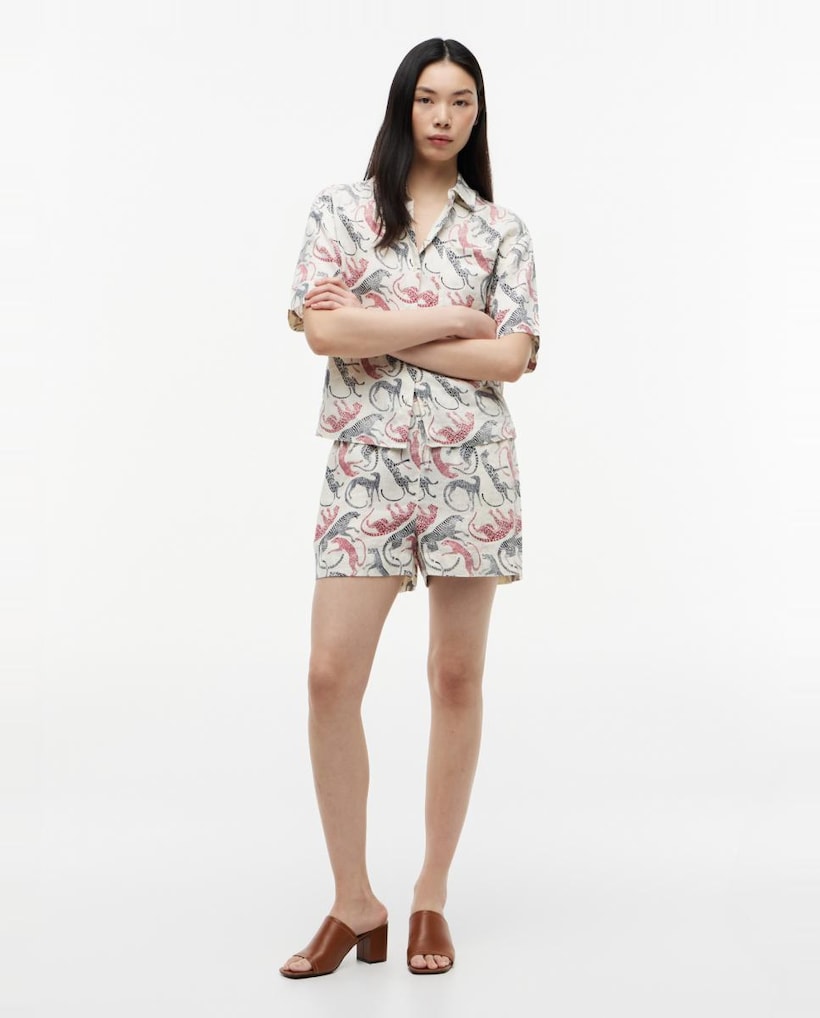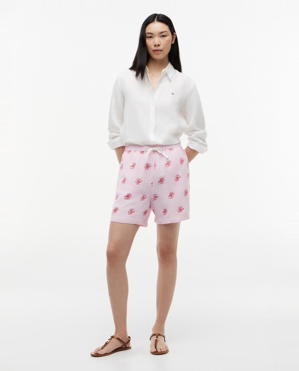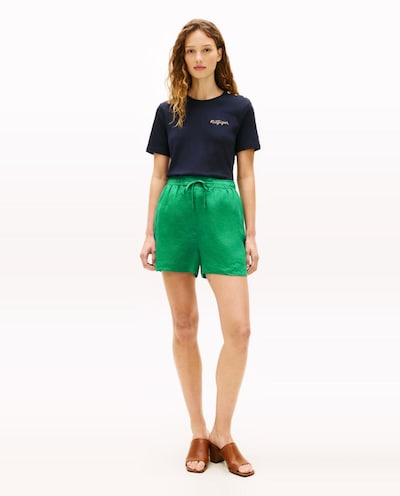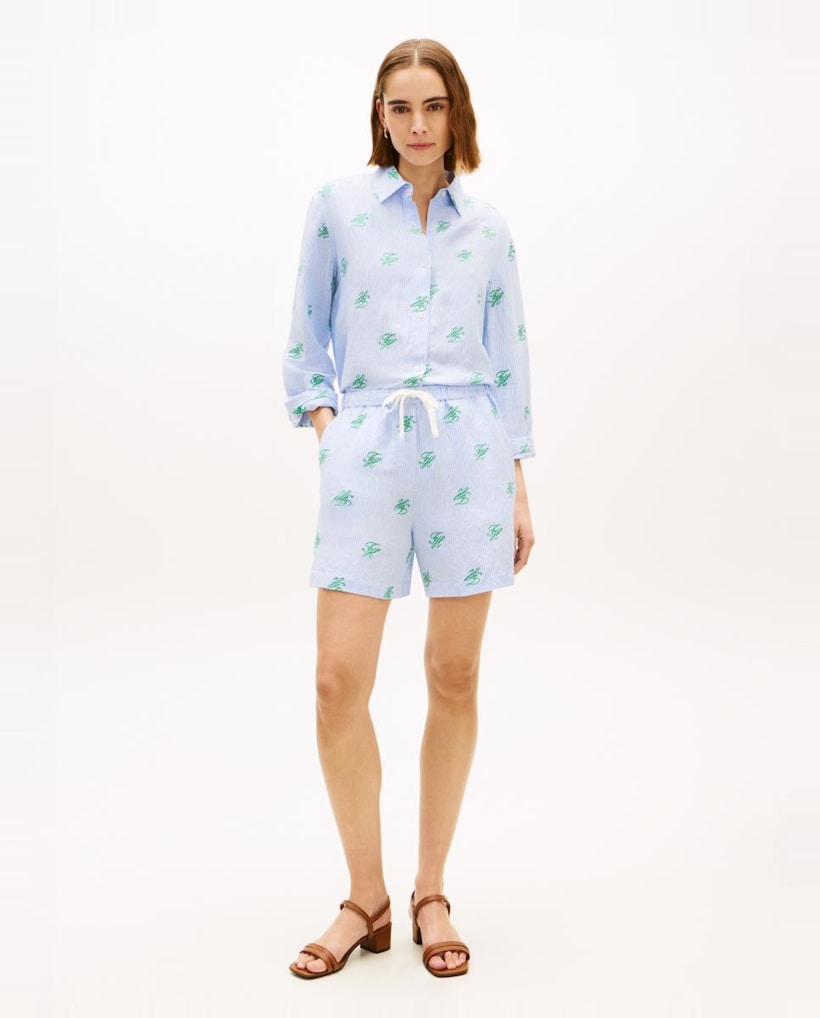 Calções de Linho com Cintura Elástica e Cordão Ajustável