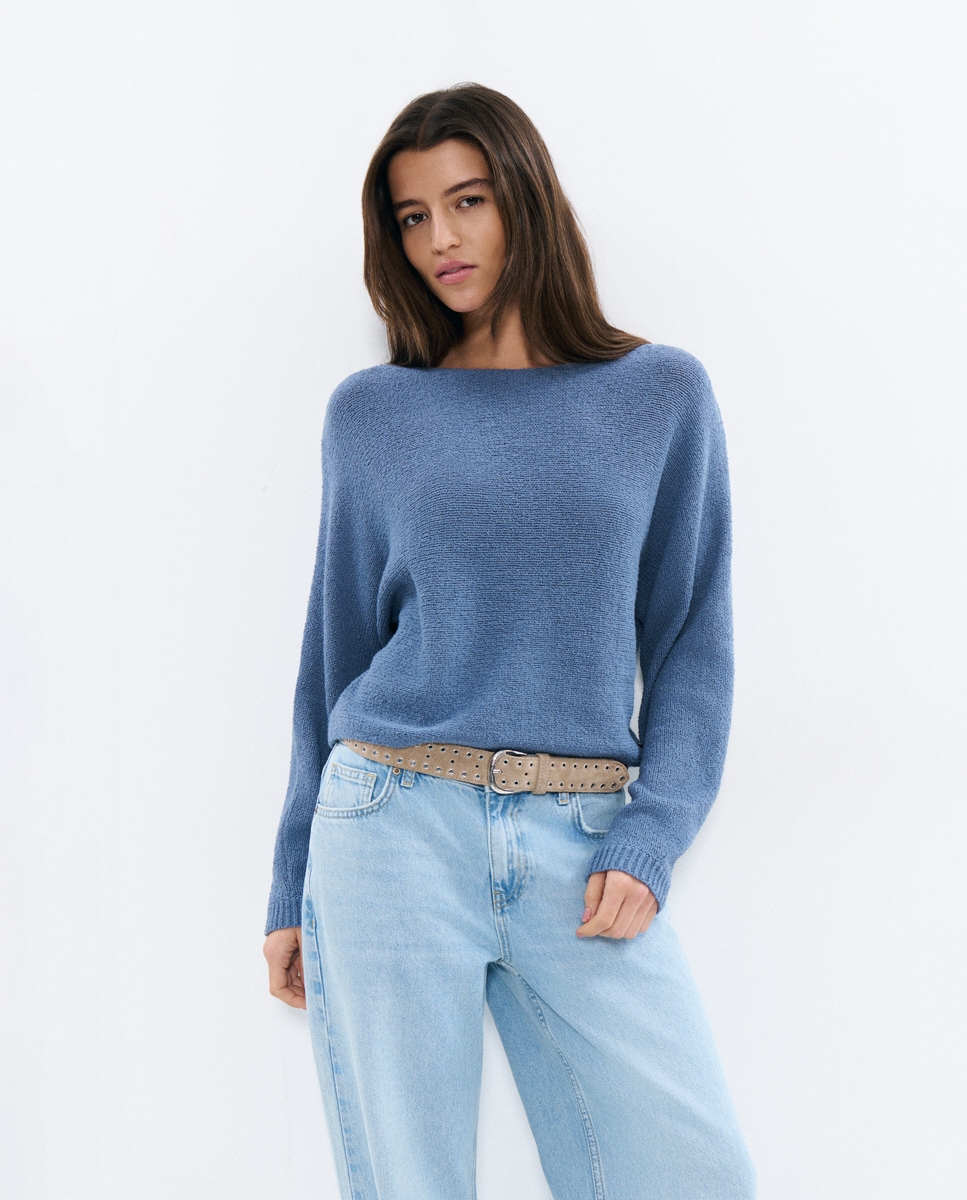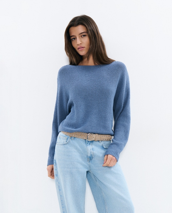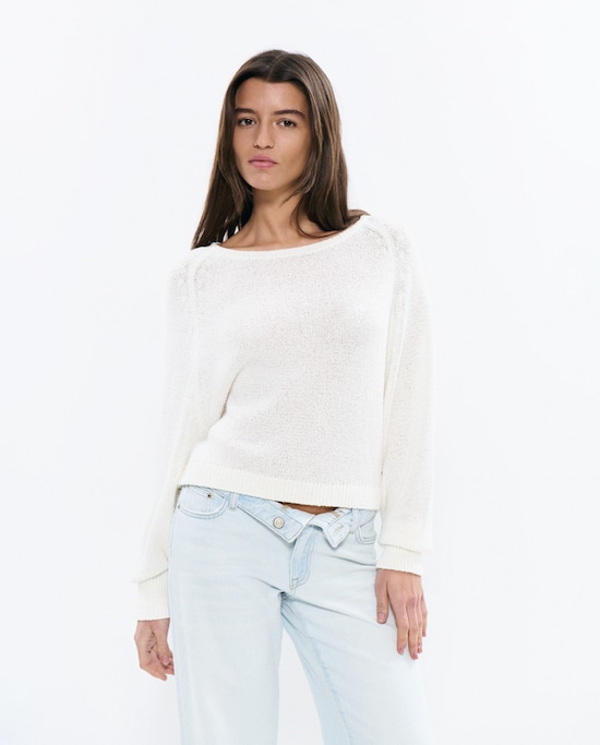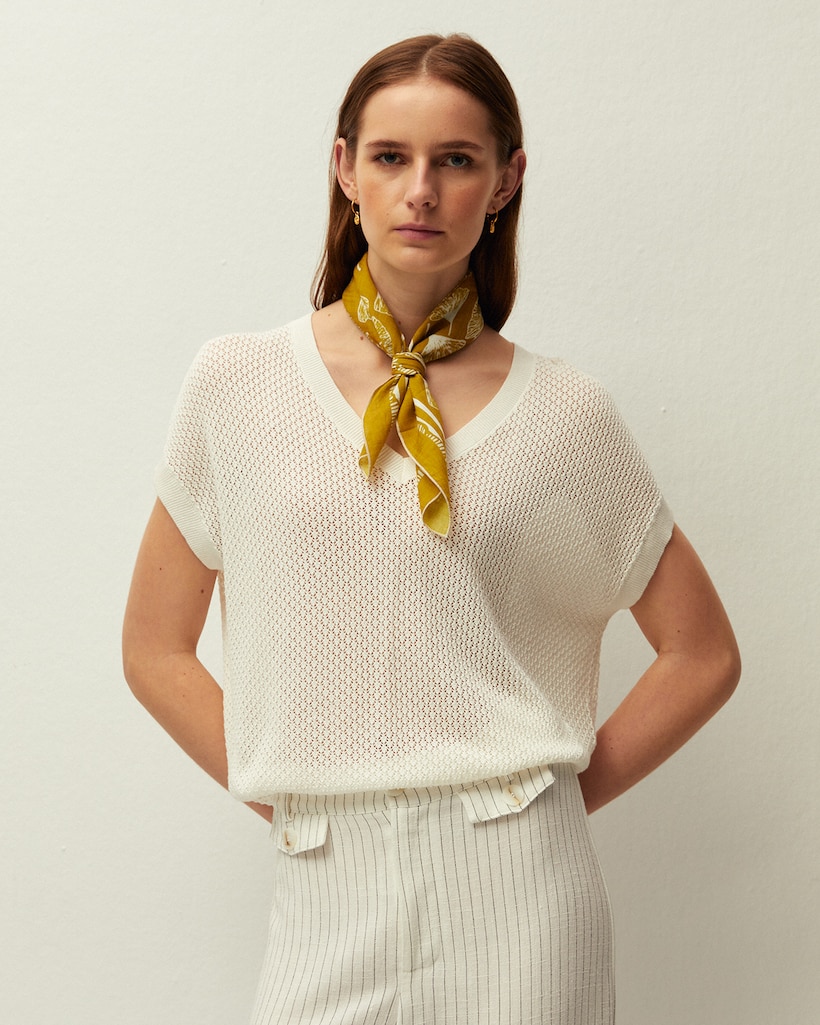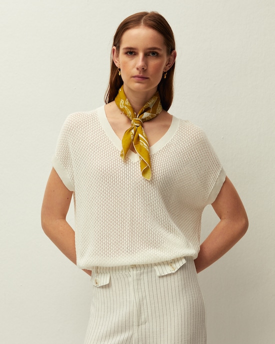 Camisola de Malha Perfurada e Decote em V