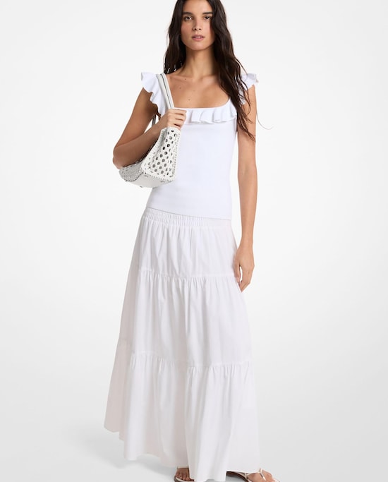 Saia Comprida Estampada com Pregas
