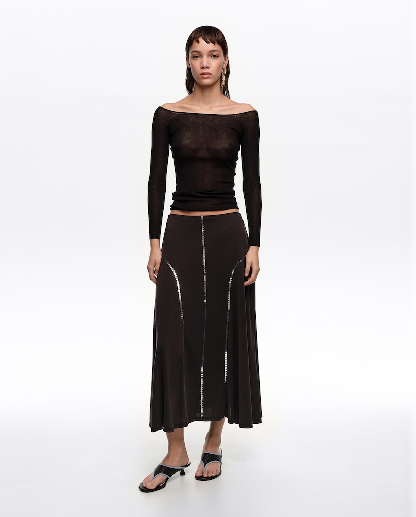 Saia Midi Fluida Lantejoulas