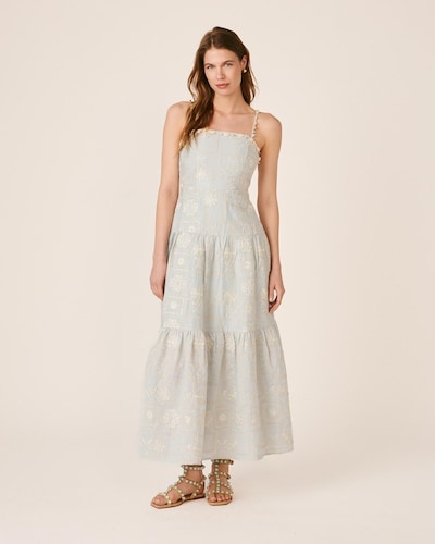 NovoAlma en PenaVestido Comprido Fluído de Flores e Gola Alta com Fecho Zip Invisível e Botões na GolaAdicionar