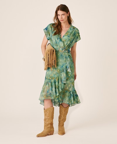NovoAlma en PenaVestido Comprido Estampado Fluido de Manga Curta Caída com Pregas e Decote em V2 CoresAdicionar