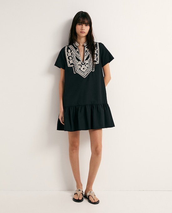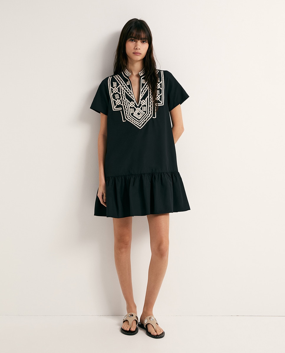 Vestido Curto de Mescla de Linho com Estampado Floral