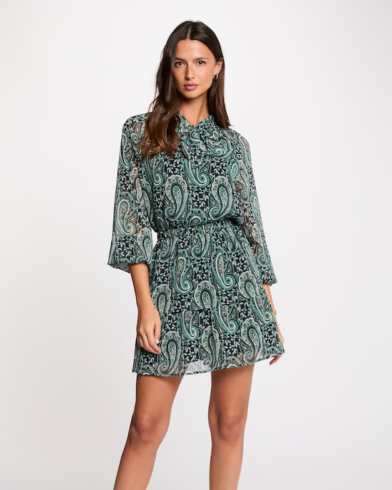 Vestido Curto com Gola Redonda e Cintura Franzida