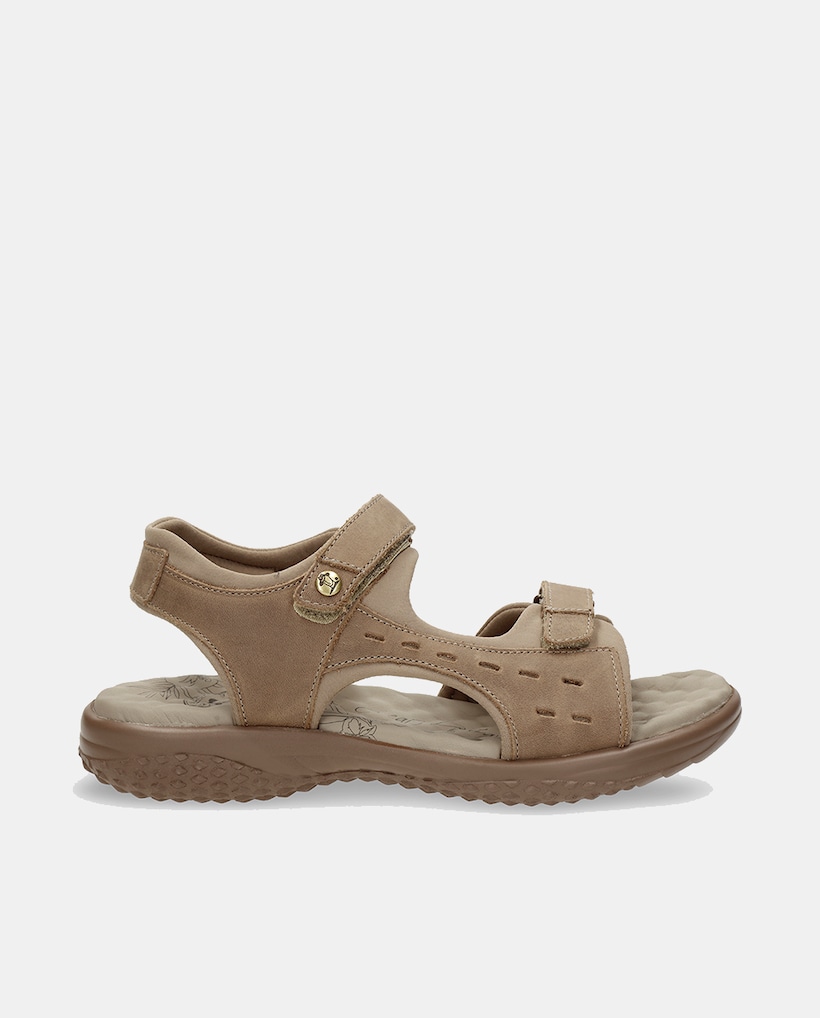 Sandálias rasas taupe com fecho aderente