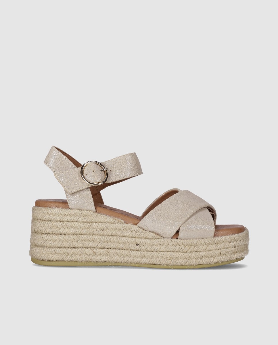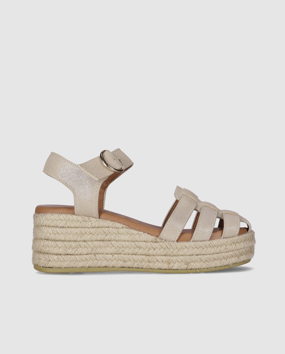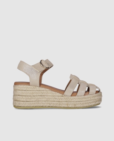 NovoChika10Alpercatas de Cunha em Pele com Tiras Combinadas Tipo Cangrejera e Fecho em Fivela3 CoresAdicionar