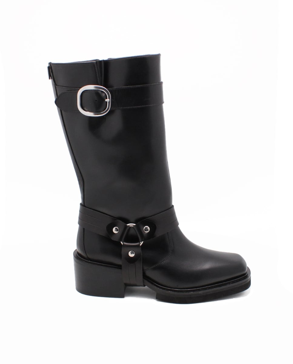 Botas Tipo Biker de Cano Médio em Pele com Fivelas