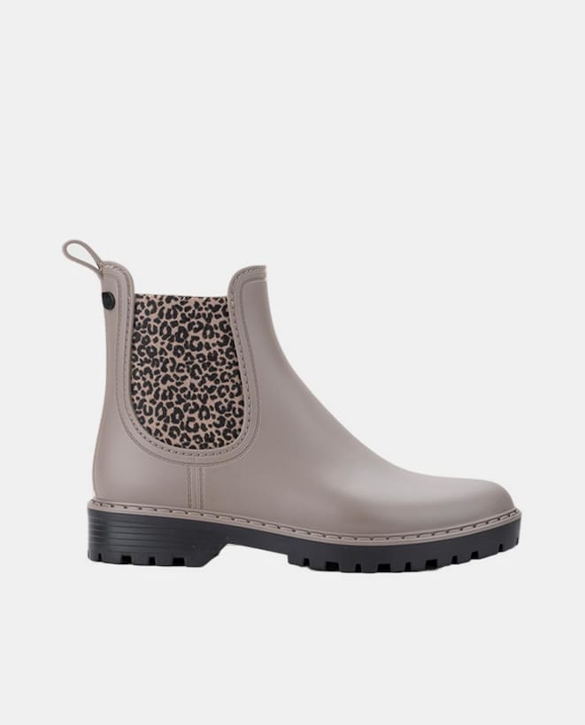 Galochas com Sola Track e Puxador com Elástico Leopardo - Preto