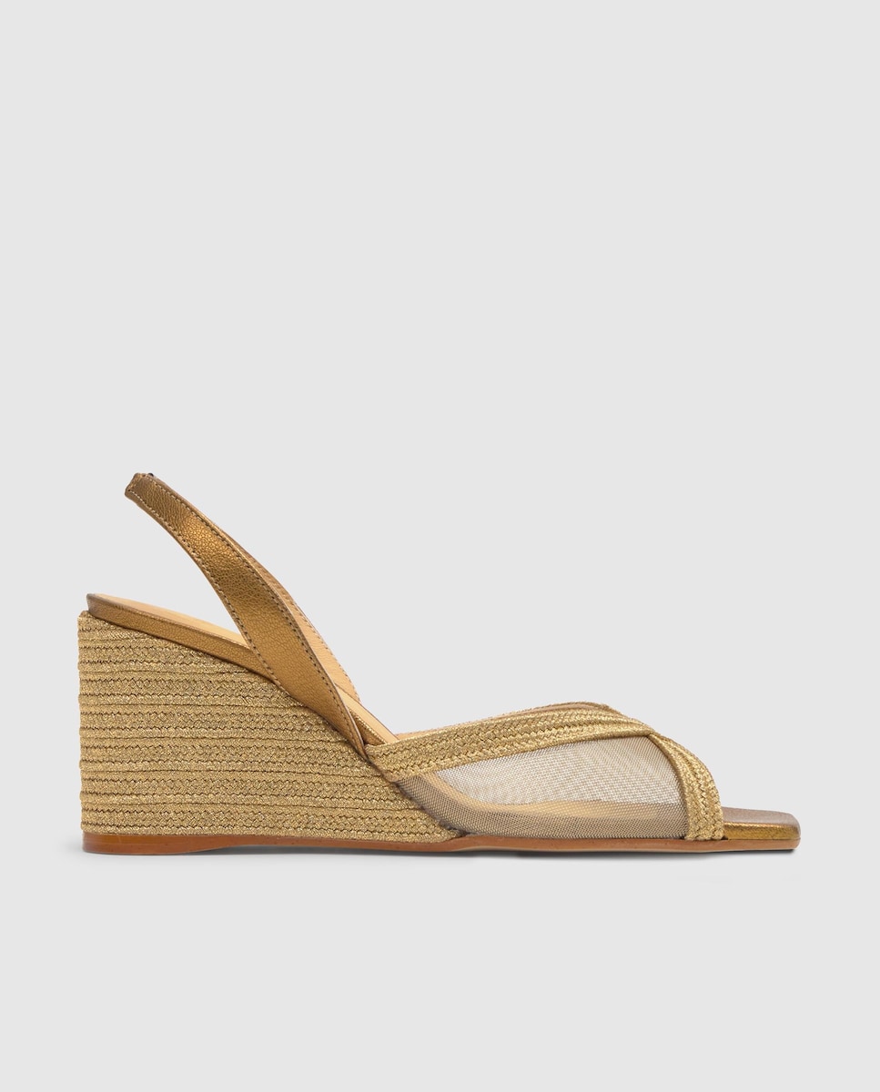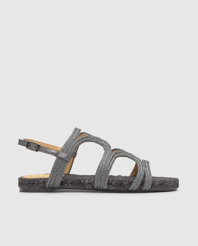 NovoCastañerSandálias com Tiras Pitra com Entrançado Metalizado Artesanal, Fecho de Fivela e Sola de Juta com Piso de CueroliteAdicionar