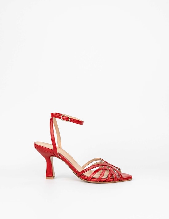 Sandálias de Salto Alto em Pele - Vermelho
