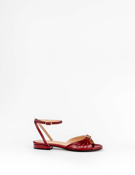 Sandálias Rasas em Pele - Bordeaux