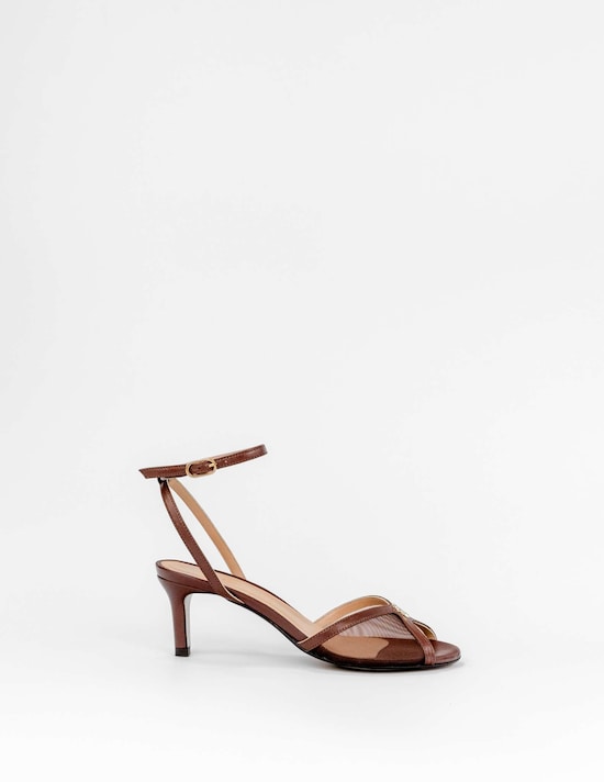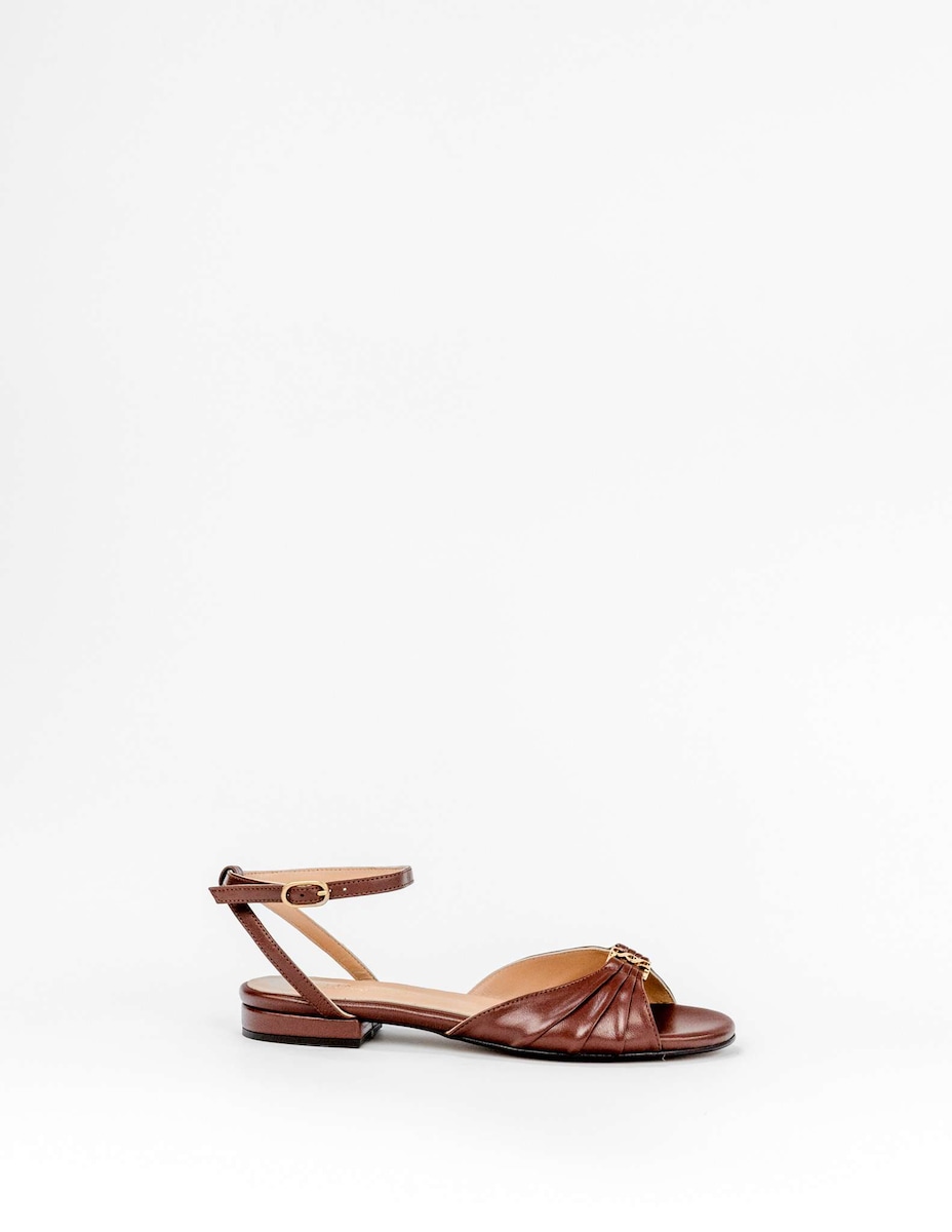 Sandálias Rasas em Pele - Castanho
