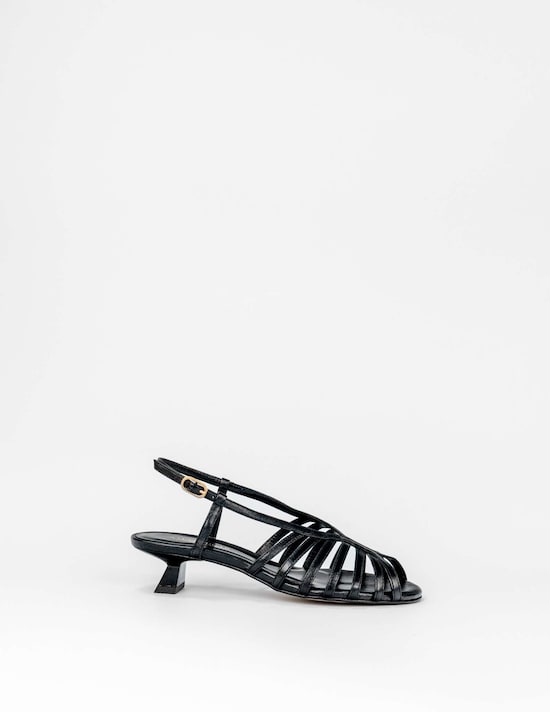 Sandálias com Salto em Pele - Preto
