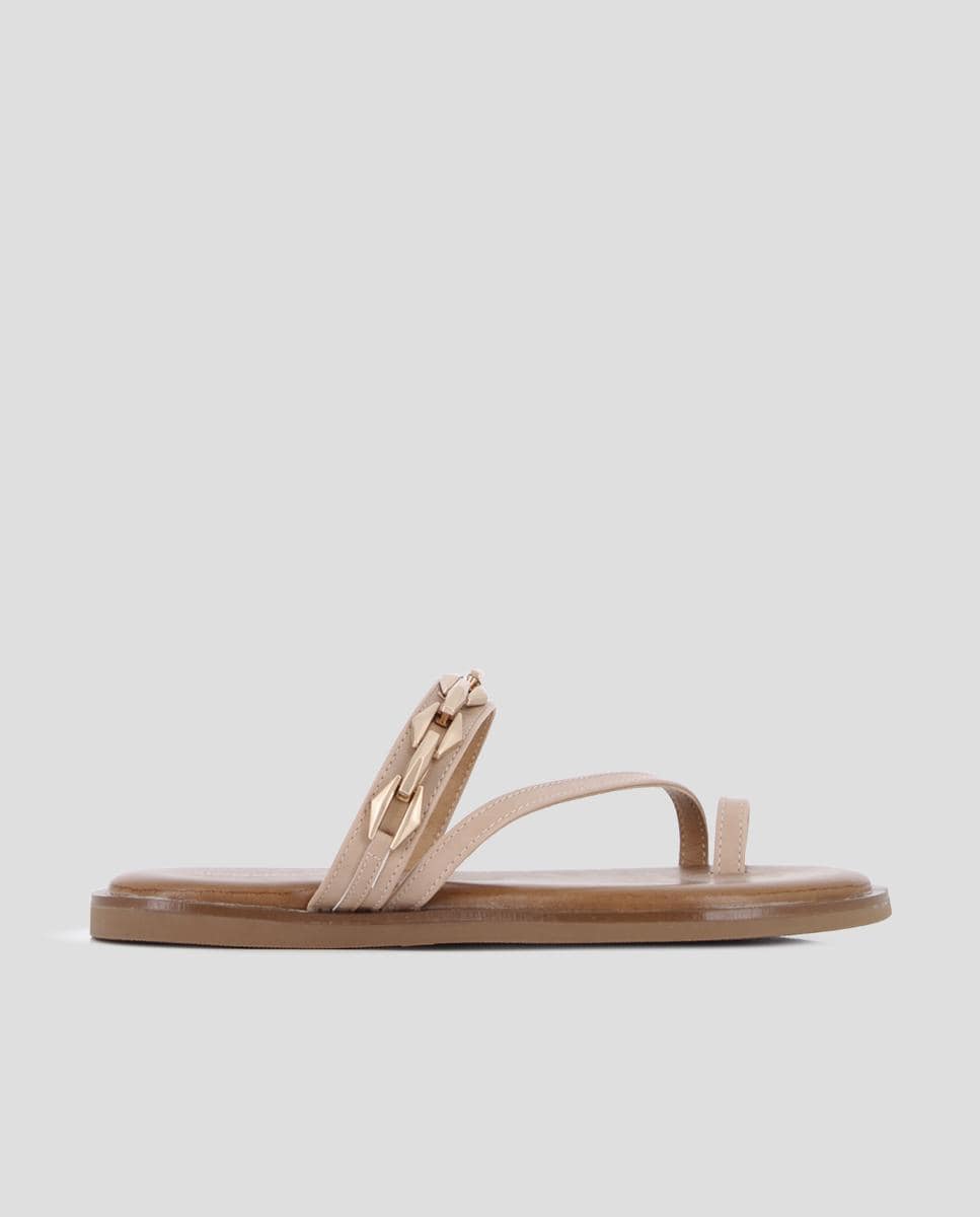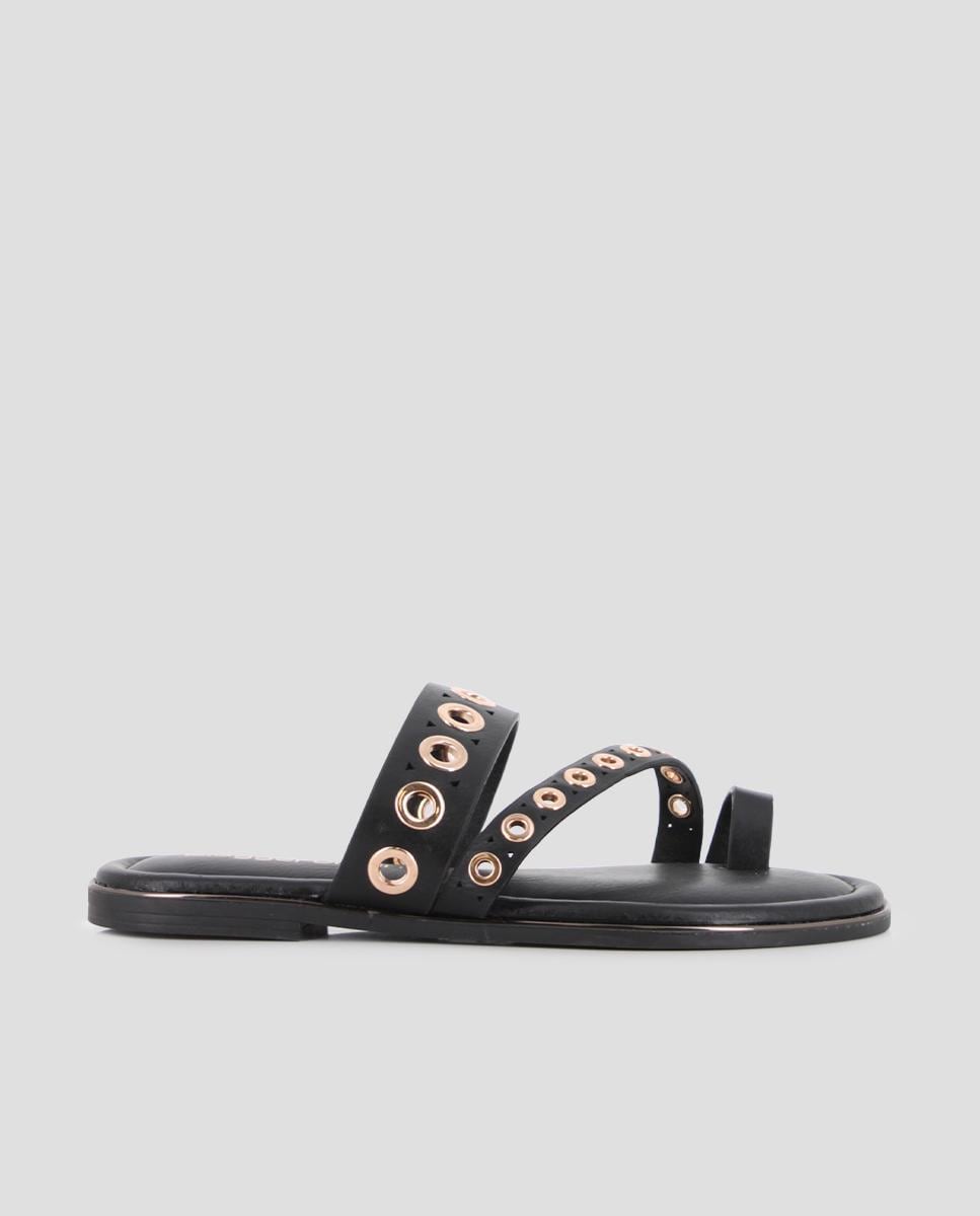 Sandálias de Dedo Rasas com Detalhe de Metal