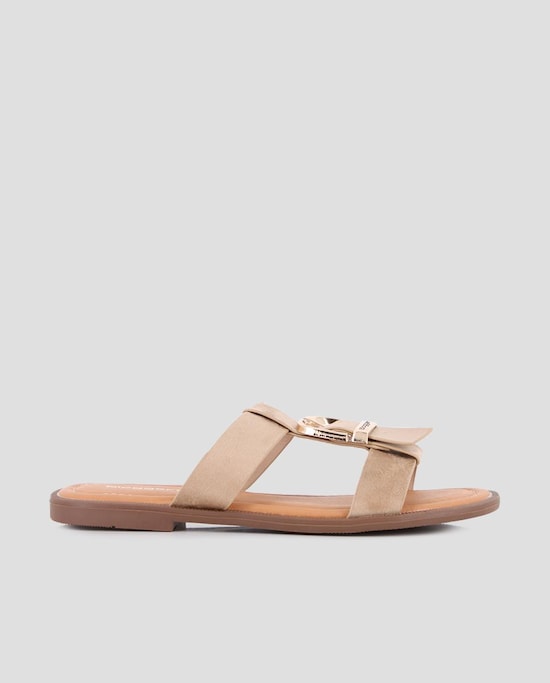 Sandálias Rasas com Tiras Decoradas e Fecho de Fivela