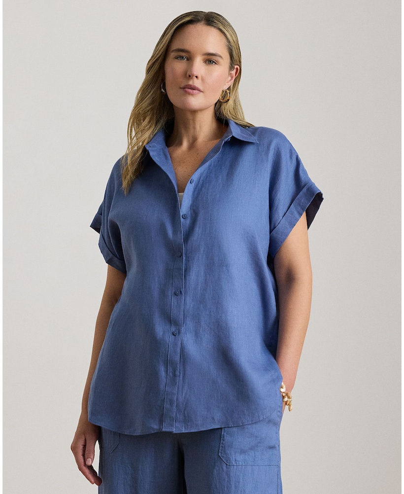 Camisa Tamanhos Grandes com Mangas Dolman e em Linho