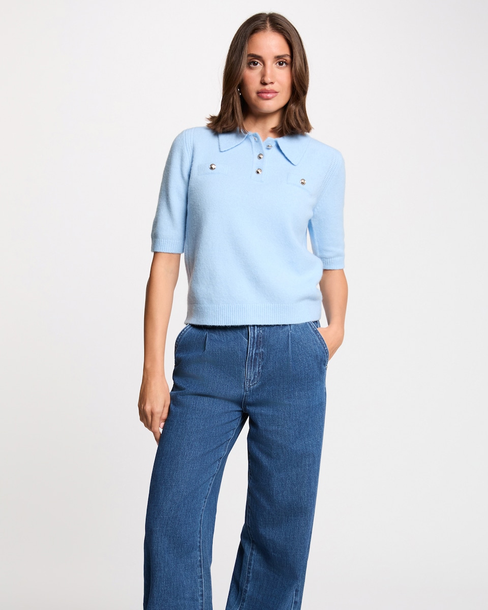Camisola Curta com Gola de Camisa