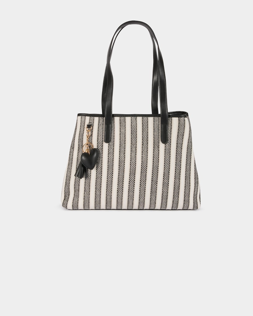 Mala de Ombro com Pendente e Estampado Às Riscas