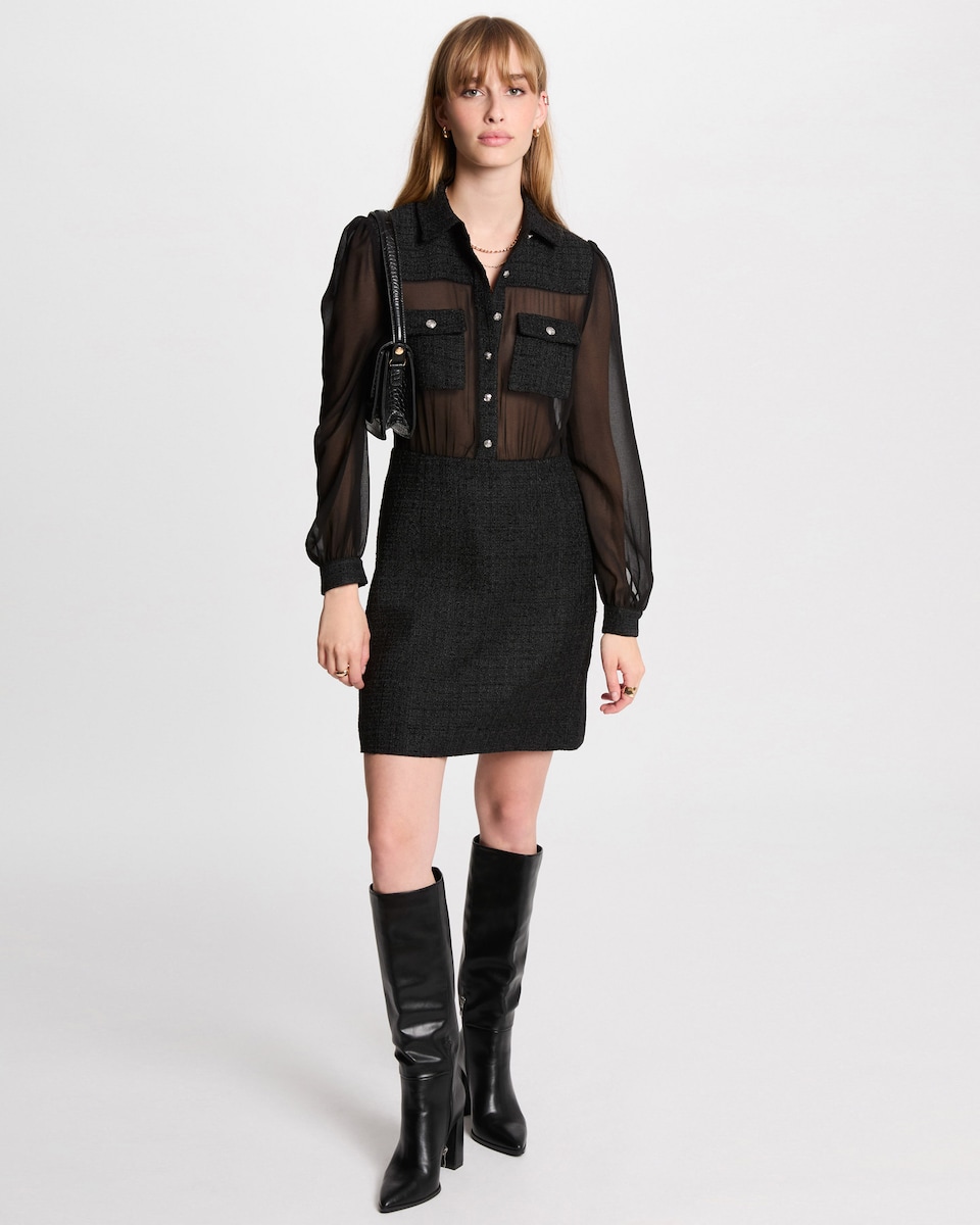 Vestido Curto com Mangas 3/4 Abalonadas