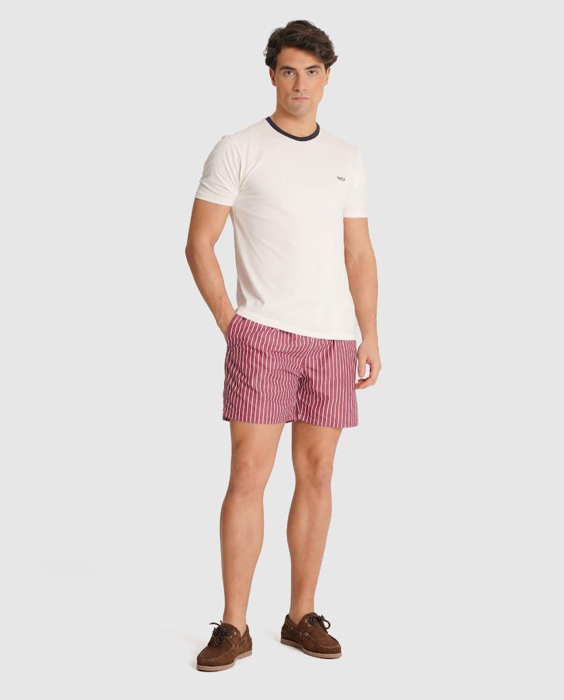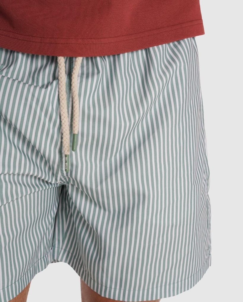 Fato de Banho de Corte Regular com Elástico e Design Às Riscas