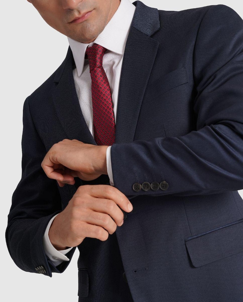 Fato de Corte Regular Liso em Azul-marinho