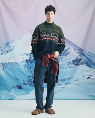Camisola de Malha com Meio Fecho de Correr e Jacquard