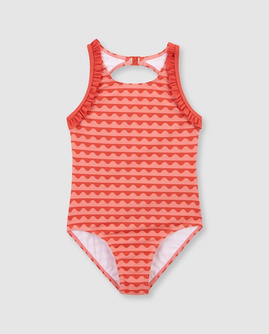 Fato de Banho Infantil com Estampado de Ondas com Folhos