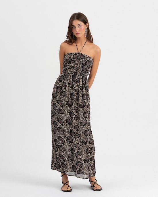 Vestido Midi com Elásticos Estampado