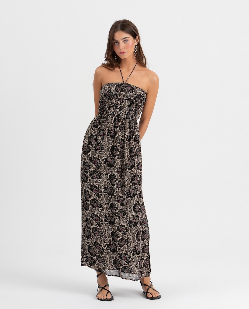 Vestido Midi Estampado Franzido