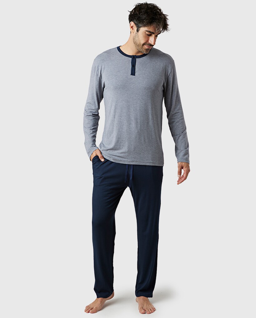 Pijama Comprido de Modal em Azul-marinho