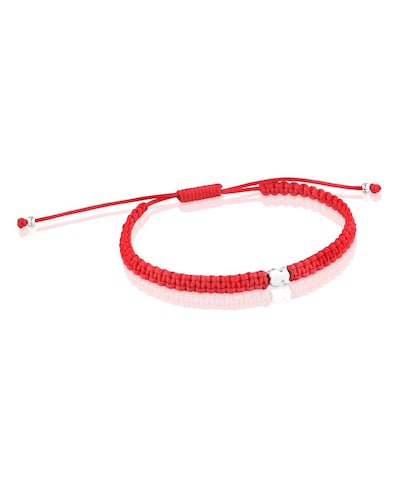 Pulseira Motivos Urso de Prata e Nylon em Vermelho