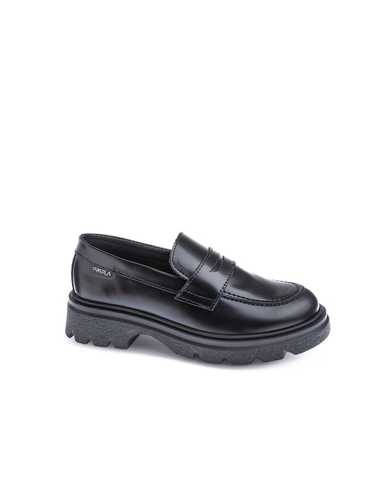 Mocassins com Detalhe de Travessão, Sola Track e em Pele