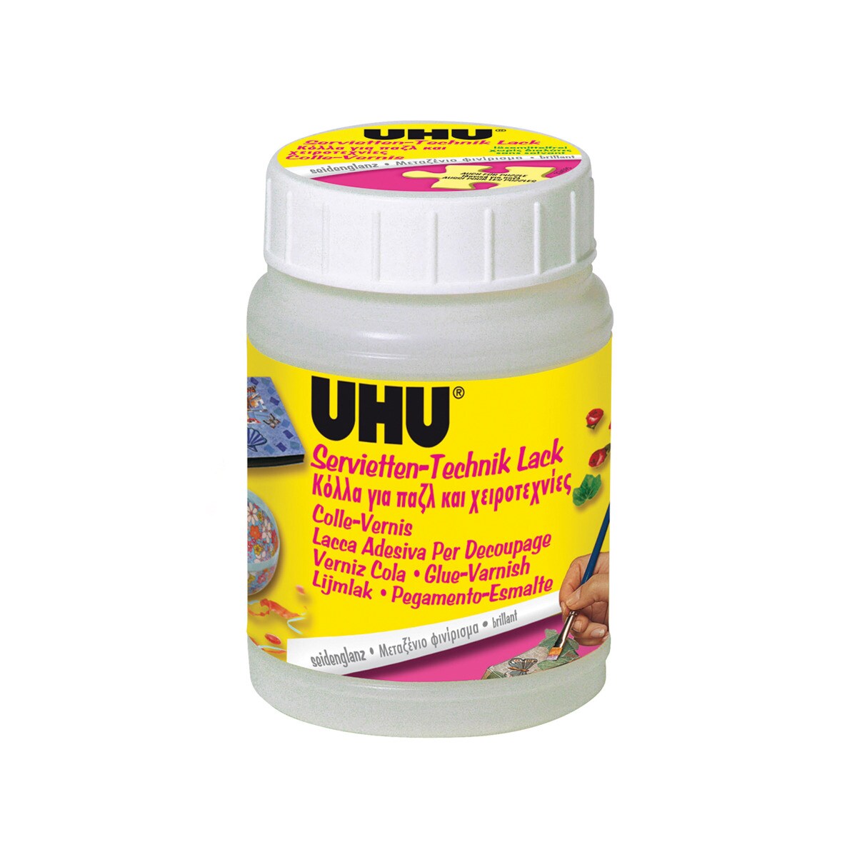 Com a UHU Creativ Verniz Cola pode efectuar decorações fascinantes usando guardanapos de papel e técnicas de corte e colagem em praticamente todas as superfícies, incluindo terracota, louça de barro, pedra, vidro, papel, cartão, papel machê, Styrofoam® e plásticos. Cola, veda e dá acabamento. Também ideal para fortalecer tecidos, colar puzzles, decorar com areia, lantejoulas e brilhantes e revestir fotos.