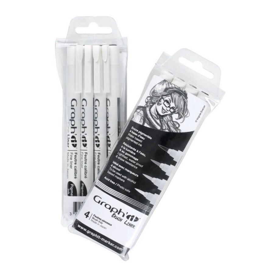 Os Brush Liners GRAPH'IT possuem uma tinta livre de ácido, resistente à luz e resistente à borracha. O seu fluxo de tinta perfeitamente equilibrado fornece uma linha limpa e precisa. Estes marcadores de tinta pigmentada à base de água são equipados com uma ponta de pincel que combina flexibilidade e capacidade de resposta e são totalmente adequados para o uso de marcador de álcool, uma vez que a tinta pigmentada não escorre com álcool.