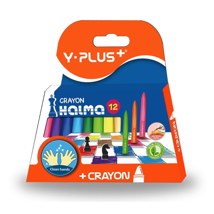 Y-PLUS HALMA - Lápis de Cera de Plástico - 12 cores
