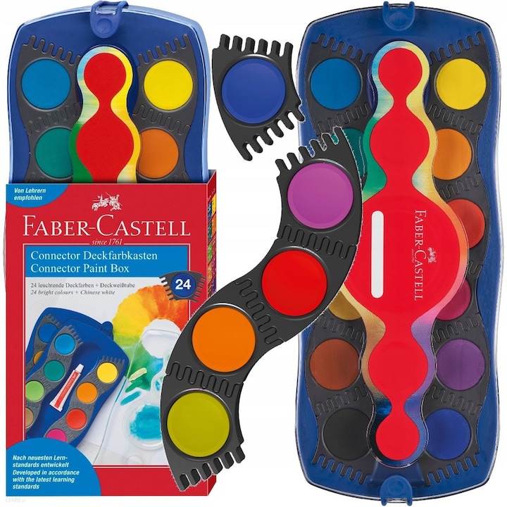 As tintas individuais podem ser combinadas individualmente, ajudando as crianças a aprender sobre as cores através do jogo. As cores claras têm uma forte opacidade e podem ser misturadas perfeitamente, tornando-as adequadas para todas as técnicas e uso na escola e em casa.
