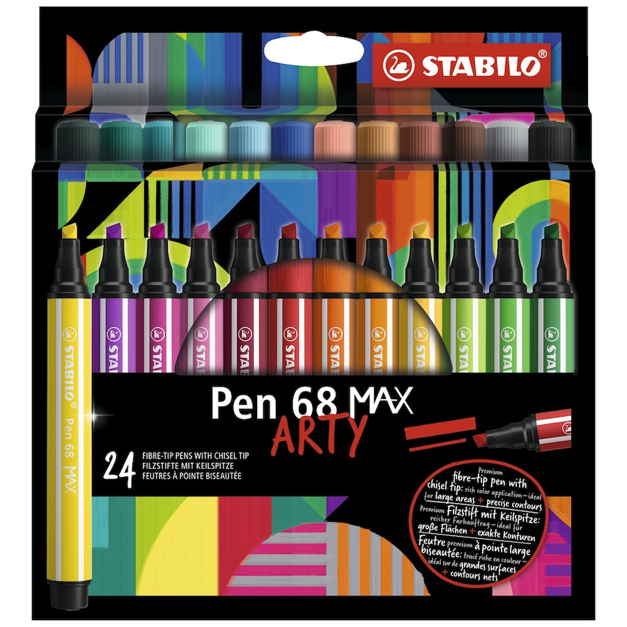 Estojo com 24 Marcadores Premium com Ponta de Fibra Biselada Pen 68 MAX - Multicolor