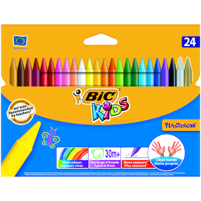 Pack de 24 lápis de cera de plástico de colorir Kids Plastidecor
