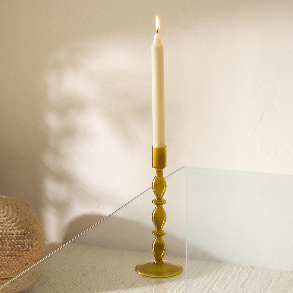 Candelabro de Vidro Fino - Cor de Mostarda
