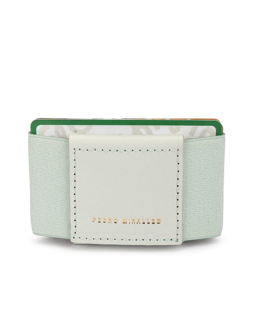Porta-cartões de pele feminina em cor verde água
