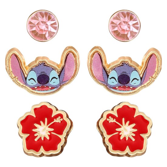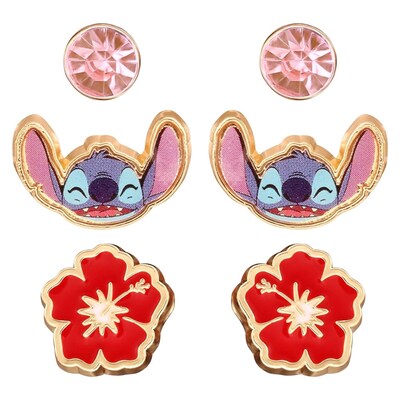 Conjunto de 3 Brincos Stitch Flores Lilo&Stitch Disney