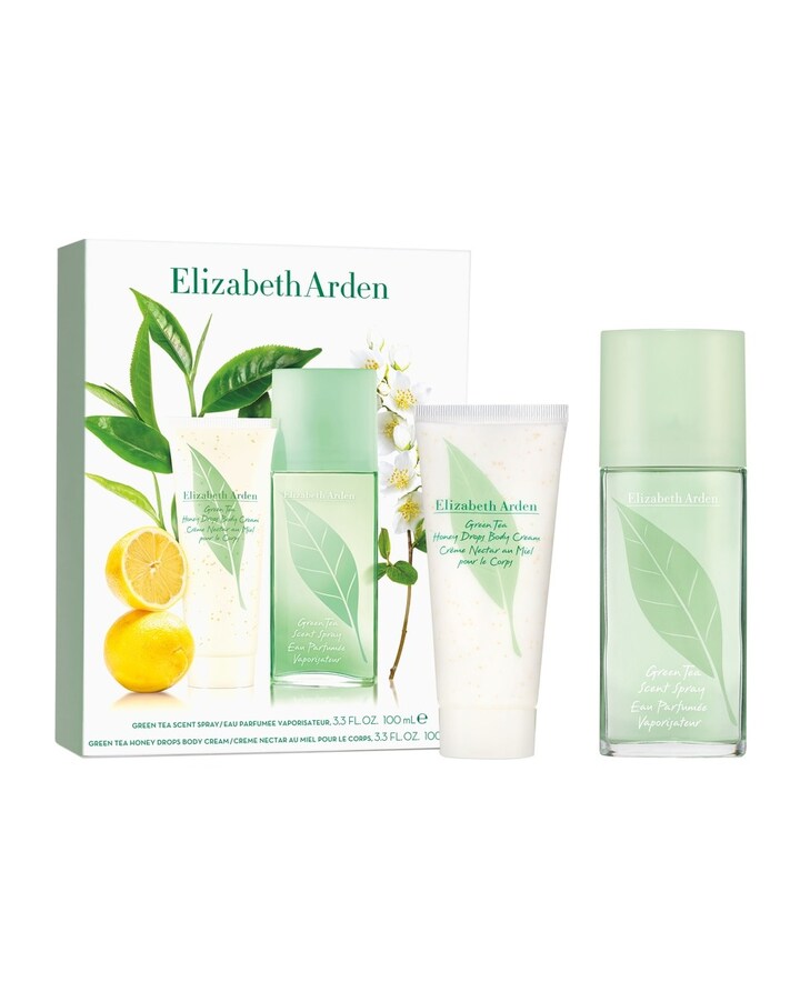FRAGRÂNCIA DE CHÁ VERDE 100 ml + CREME DE CORPO GOTAS DE MEL DE CHÁ VERDE 100 ml Este conjunto refrescante de Elizabeth Arden é inspirado na vitalidade e energia do chá verde, proporcionando uma experiência revitalizante que equilibra o corpo, a mente e o espírito. - Green Tea Eau de Toilette: Este aroma leve desperta os sentidos e revitaliza o espírito. Com a sua mistura natural de extrato de chá verde, o perfume transporta-o para uma aventura cheia de energia, serenidade e felicidade. Ideal para quem procura um toque refrescante e alegre que dura todo o dia.