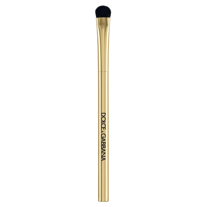 Define e cria profundidade com o pincel de maquilhagem Eyeshadow Shader Beauty Brush. A sua forma achatada e as cerdas densamente compactadas permitem uma aplicação precisa da cor no côncavo ou ao longo da linha das pestanas, ideal para looks intensos e dramáticos. Com cerdas vegan ultra macias em preto, um cabo em alumínio dourado inspirado nos códigos de design característicos da Dolce&Gabbana e um toque pesado e luxuoso, este pincel combina elegância com desempenho excecional.