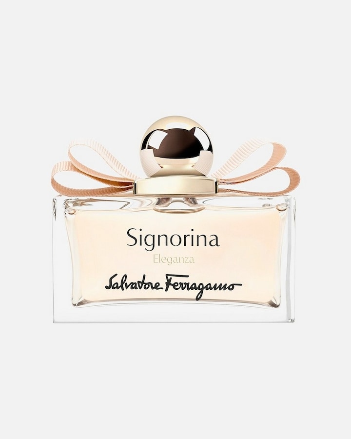 SIGNORINA ELEGANZA de Ferragamo é uma fragrância luxuosa que celebra a elegância e a sedução femininas. Notas de topo frescas de toranja e pera são uma introdução estimulante e vivaz. A amêndoa em pó e as pétalas douradas de osmanthus criam um coração delicado e intenso, acrescentando um toque de luxo indulgente. As notas de fundo de patchouli e couro branco criam um efeito delicioso e persistente na pele.