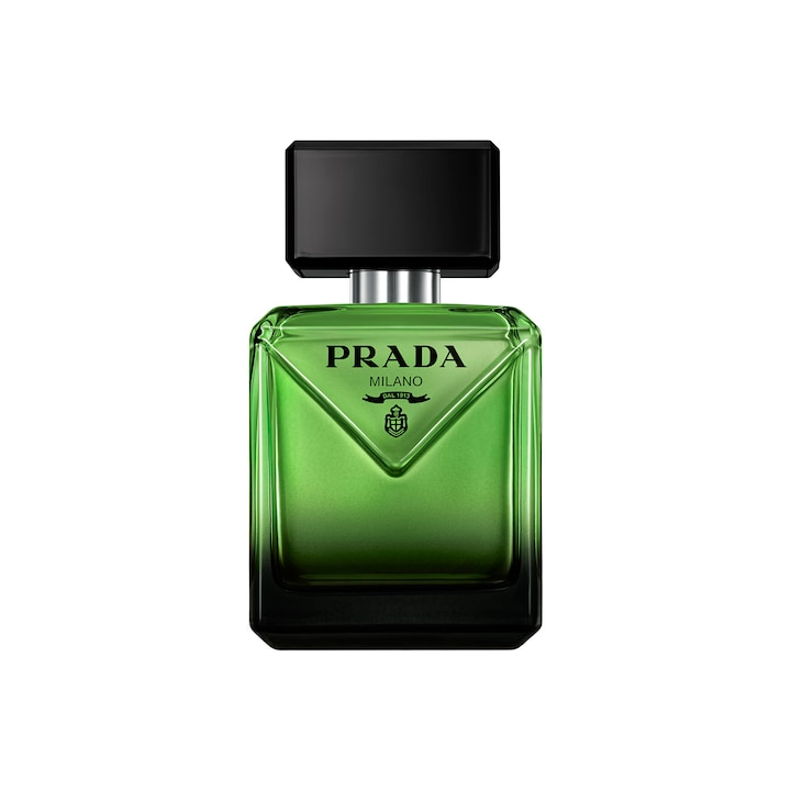 Outra forma de desenhar um frasco. O frasco Paradigme desperta a curiosidade. Uma silhueta arquitetónica de elegância radical suavizada por arestas arredondadas e uma declaração vanguardista através do característico triângulo inclinado de Prada, assinatura icónica da casa. Um frasco lacado numa intensa e sedutora gradação de preto a verde, a cor icónica da casa. A caixa exterior está gravada com a assinatura da marca em couro Saffiano e assinada com o logótipo prateado de Prada. "Ao conceber o frasco de Paradigme, recorremos aos arquivos de fragrâncias de Prada e procurámos formas de reinventar o design a partir de uma perspectiva contemporânea. A cor verde é inesperada, a aresta biselada do triângulo invertido surge como um detalhe tátil e surpreendente. Desta forma, é característico de Prada, ao mesmo tempo que inegavelmente sofisticado, mas com um toque de excentricidade", Coralie Salem, Diretora Criativa de Prada Beauty