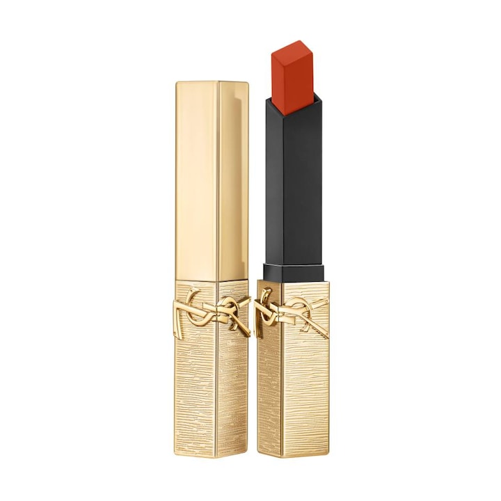 Celebre o Natal com estilo com o Cofre de Edição Limitada de Yves Saint Laurent The Slim Holiday 25 no 1936 Firey Era. Um batom couture com acabamento mate aveludado, concebido para oferecer até 10 horas de cor intensa e uniforme. A sua fórmula altamente pigmentada desliza suavemente, proporcionando uma sensação de conforto hidratante que dura o dia todo. Inspirada na alta costura, esta edição limitada é apresentada num estojo dourado metalizado com textura de luxo, tornando-o um acessório de beleza tanto funcional quanto elegante. Perfeito para definir o arco do cupido e realçar os lábios com um vermelho sofisticado, este batom transforma qualquer visual numa declaração de estilo. Uma peça imprescindível de edição limitada para oferecer no Natal ou para adicionar um toque couture à sua coleção pessoal de maquilhagem.