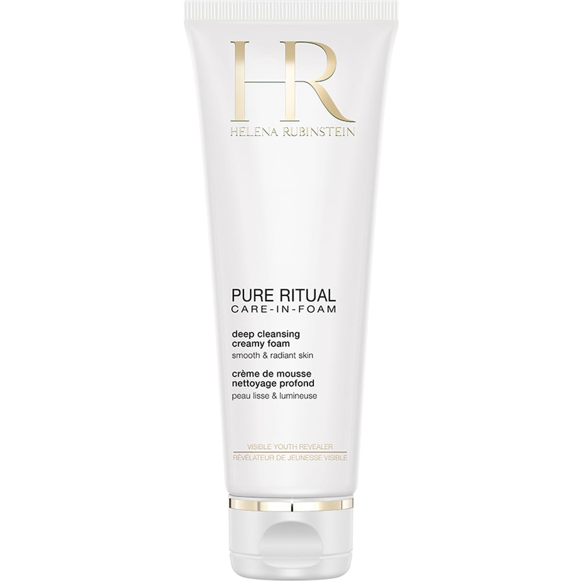 - A espuma de limpeza facial Pure Ritual CARE-IN-FOAM da Helena Rubinstein remove a maquilhagem, limpa em profundidade e proporciona um efeito iluminador à pele.